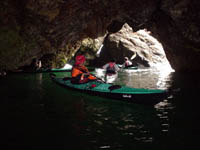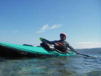| ■インプレッション(1)〜概要 遠征に使うフォールディング・カヤックとして名前を挙げるなら、真っ先にこのK1 Exp.の名前が出てくる事でしょう。実際所有してみて、実に良くできたカヤックだと思います。カサラノに比べてフレーム構成はシンプル。しかし部材寸法が大きくなっているので、かなり丈夫になっております。デッキの上に腰掛けられるくらいです。 横幅が63cmもあること、全体のボリュームも大きいことなどから、かなり安定感があります。しかし、シートが高めにセッティングされていますので、意外に傾け易くなっています。外傾リーンも可能ですが、カサラノやリジット艇に比べると、倒す方が大変。小回りは内傾の方が回しやすいです。 上記のように書くと操りにくいカヤックのように思えますが、実はそんな事もありません。上級者が乗ると、外傾リーンは勿論、波乗りも自由にこなしてみえました。 安定性が高い艇ですので、グリーンランダー500MKIIIのように足が遅いかと言うと、そうでもありません。やはり遠征に適したカヤックと言う事でしょう。 |