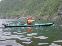 ■購入の経緯 2002年9月にノーティレイ グリーンランダー500MKIIIを購入、1年半使用しましたが、今ひとつ満足ができませんでした。 そんなある日、クロンダイク購入のきっかけとなったSEA KAYAKER'S NETWORKのBBSにK1 Exp.の中古艇が登場。しかも私のずっと探していた、98年のモデルチェンジ以降の、フレームが変わり、バウがせり上がったモデル。かなり値打ちでしたが、BBSに掲載されてから長い間買い手がついていない事から迷いました。使い方がかぶるグリーンランダー500MKIIIを所有していた事も迷いの一因だったでしょう。しかし、前オーナー(出品者)を知るカヤック仲間から、「彼の艇なら大丈夫」とアドヴァイス受け、思い切って譲っていただくことになりました。 K1 Exp.が欲しかった理由は、やはりキャンプツーリングの為です。カサラノSでも積載量に不満はありませんが、乗りこなしす事ができない為、キャンプツーリングでは不安が倍増。安心できるフォールディング・カヤックとして、K1 Exp.は理想でした。 |